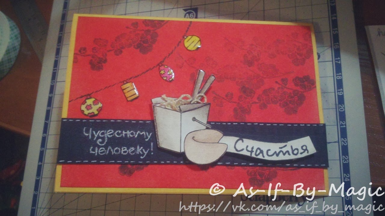 Эта открытка была сделана для моего хорошего друга, который никогда не пробовал китайской еды, но по фильмам ему нравится образ печенья с предсказаниями ))